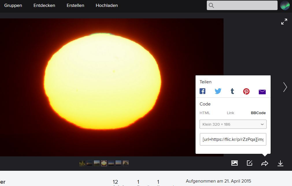 Dort wähle ich "BBCode" aus und kann die Vorschaugröße wählen.