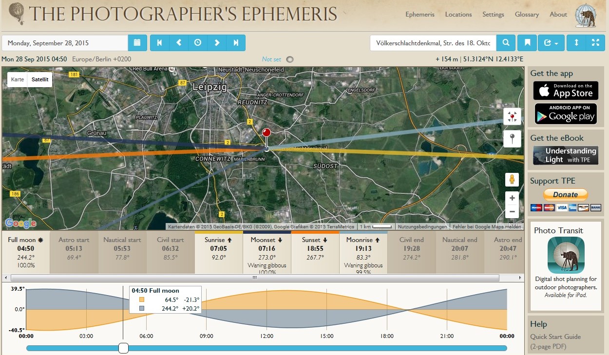Da kann man vorher schon mal ganz bequem seinen Fotostandort mit Blick auf den Mond aussuchen.