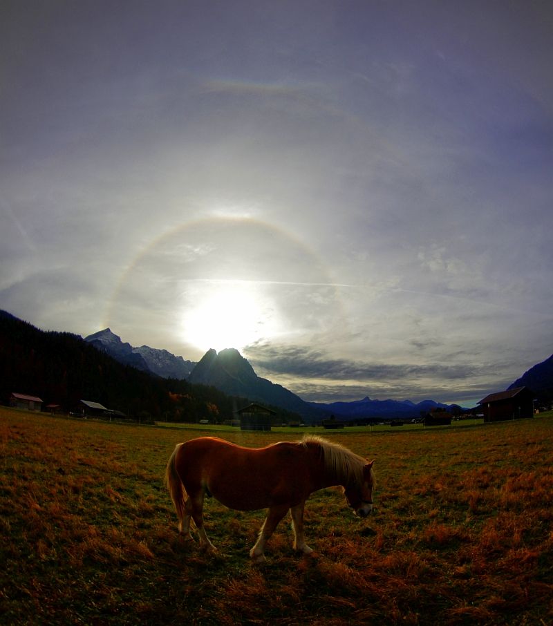 nachdem ich schon fast vergessen hatte, wie Halos aussehen, meldeten sie sich gestern auf der Zugspitze und später in Garmsich unverhofft zurück.