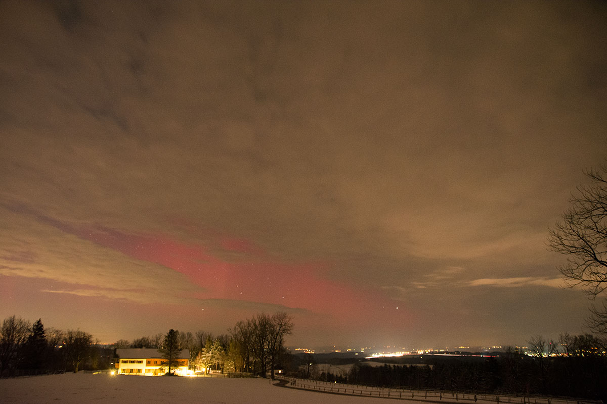 auch ich habe das Polarlicht beobachtet. Der erste Substurm ist auf den Bildern von 20:54-21:08 MEZ zu sehen gewesen. Leider war dieser direkt über München, weshalb er in Augsburg visuell sichtbar war, in Miesbach jedoch nicht.