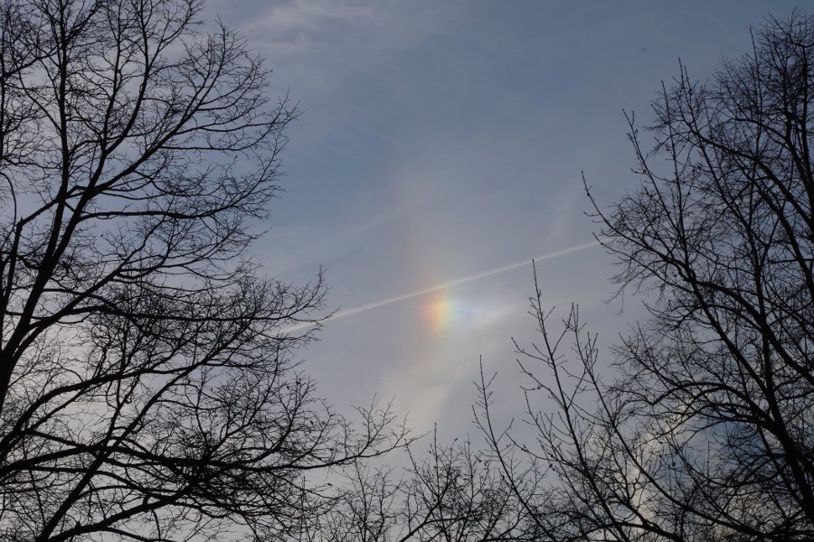 Ab 16:15 Uhr MEZ kam noch ein Zirkumzenitalbogen in fantastisch klaren Farben hinzu, an dem sich 16:30 MEZ kurz ein Ausläufer nach rechts zeigte - entweder ein Supralateralbogen oder ein 46°-Ring-Fragment. Die Sonnenhöhe war circa 18°, lässt sich da noch eine sichere Unterscheidung machen?