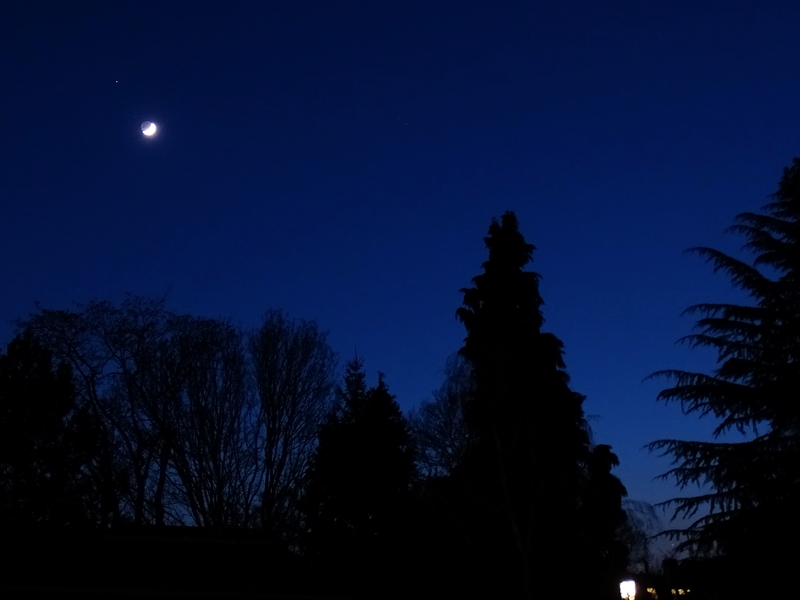 Erst gestern(!) ergab sich eine Möglichkeit, Merkur hier in Augenschein zu nehmen. Das Wetter macht einem derzeit durch vieles einen Strich. Ein Hoch bei Island, die Tiefs kratzen einen weiten Bogen über das Mittelmeer (inverse Wetterlage, hoffentlich nicht mehr im Sommer!!). So entging unsereinem hier auch die Konjunktion mit dem Mond am 8.4.…