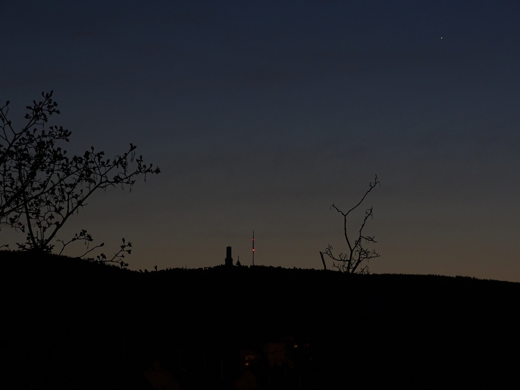 noch einmal Merkur, diesmal über dem Großen Feldberg (Taunus); aufgenommen auf einem Balkon in Oberursel.