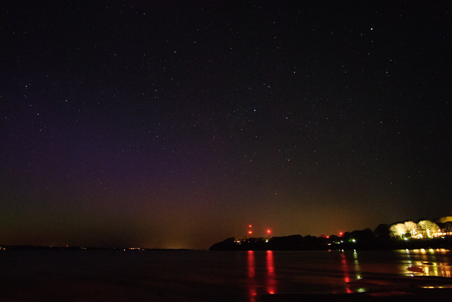 Und als ich gegen 3 nochmal aufgestanden bin, gab es bei uns auch noch ein fotografisches lilafarbenes Polarlicht.