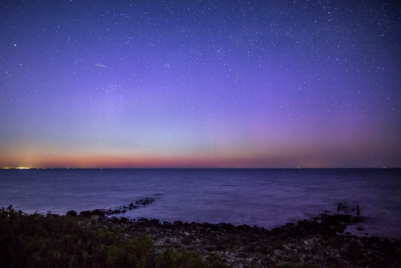 Beginn der Beobachtung war um 23:20 Uhr MESZ, Chris und ich trafen zeitgleich in Bülk ein. Als ich mein Auto parkte erzählte ich ihr von den ersten Sichtungsmeldungen (sie war zu dieser Zeit ohne Smartphone unterwegs) und dann hatte sie es plötzlich sehr eilig ;o)