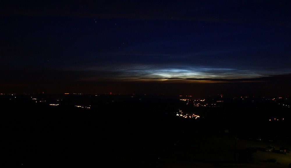 Das erste Foto ist noch zuhause entstanden, trotz Wolken gut erkennbares NLC Display am NO-Himmel und statt zu Bett, zog ich mich an und fuhr wieder nach oben.