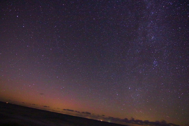 also ich bin auch noch einmal die Fotos der Nacht durchgegangen und habe das hier gefunden. Auf diesem sowie den 3 davor als auch den 6 folgenden gibt es diesen violetten Schimmer. Allerdings auf späteren Fotos nicht mehr...