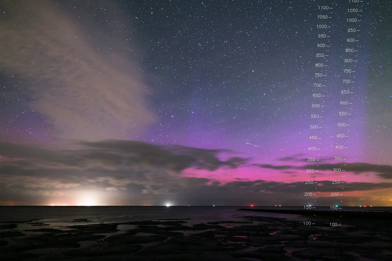 In diesem Fall konnte ich nur ein Bild von Sebastian Baak (Bildlink) und Carsten Jonas (Bildlink) verwenden. Letzteres diente zur Absicherung der Lage des Polarlichtovals in der Nacht, auch wenn es keine hochreichenden, blauen Strahlen zeigt.