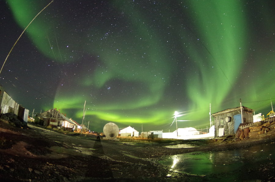 Anbei zwei fotografische Impressionen aus Volochanka (HI Taimyr). Leider hatte ich kein Stativ mehr (unterwegs verloren..) und konnte nicht schnell genug auf die effektvollen Bereiche schwenken. Eine Tonne und die Fototasche dienten als Unterlage...