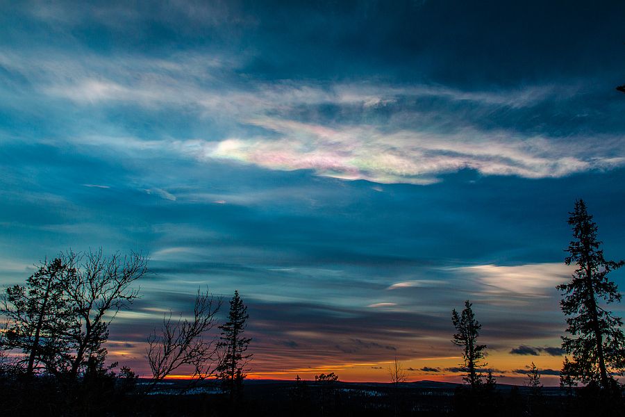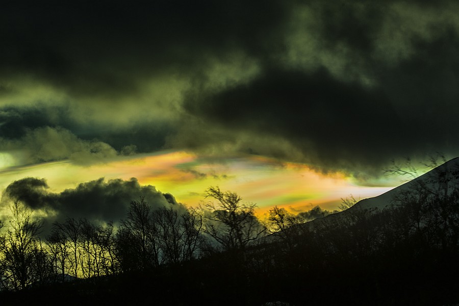 Ich habe das Bild heruntergeladen und mit Gratadionskurve und Anhebung der Farbsättigung bearbeitet. Die Wolke im linken Bildrand zeigt dabei deutliches Irisieren!
