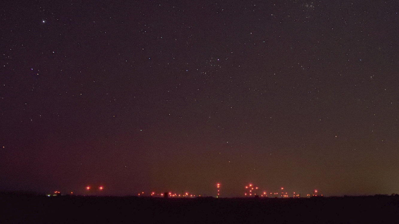 Auf den Bildern ist die rötliche Aufhellung max. bis Algol zusehen (ca. 7° Höhe). Mit den mit Rotlicht befeuerten Windkraftanlagen ist da wenig zu machen.