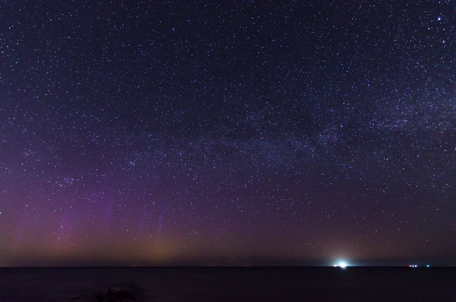 hervortraten und das Polarlicht visuell als leichte Erhellung am Horizont zu sehen war.