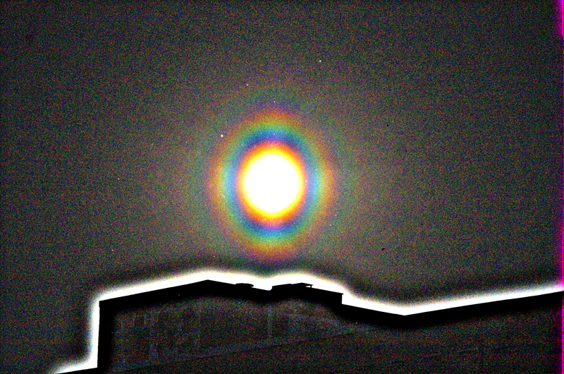 nach zwei Tagen mit nur "farblosen lichtmatschigen Aufhellungen" (Zitat Claudia), haben wir nun endlich den notwendig wolkenlosen Himmel. Damit färben die Kiefernpollen nicht nur jede sich bietende Oberfläche gelb, sondern auch das Sonnenumfeld farbig: