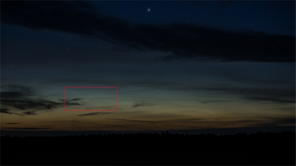 ich habe mir die Lovos-Cam gerade einmal angeschaut - die verdächtigen hellen Strukturen ziehen mit den anderen Wolken nach rechts. Das spricht deutlich gegen NLCs. Wir werden diesen Fall wohl als ungeklärt zu den Akten legen müssen.