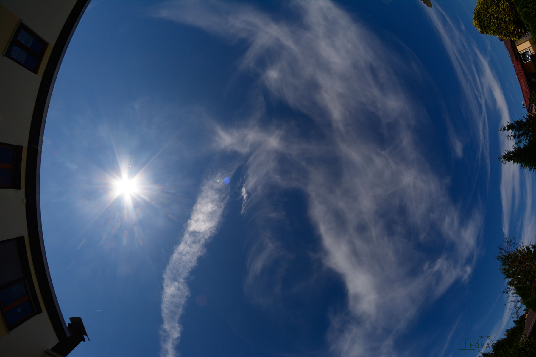 Nachdem ich eine Hand voll Fotos von meiner Katze gemacht habe, bin ich auf den Parkplatz vor das Haus gegangen und habe Richtung Sonne geschaut...immer noch keine Cirren, schade. Ich wollte mich schon fast wieder meiner Katze widmen, als ich doch nochmal einen Blick Richtung Norden geworfen habe...und da war ein Teil des HZKs zu sehen. Glücklicherweise musste ich nicht - wie sonst immer - ins Haus rennen um die Kamera zu holen, ich hatte sie heute schon in der Hand 8)