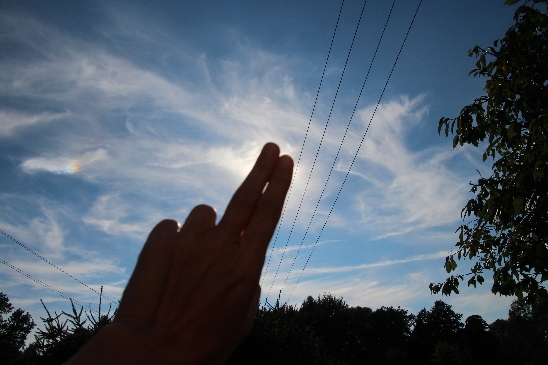 Zum konkreten Fall. Da es keinen 22° Ring bzw. weiteren Halo gab, an dem ich den Sonnenabstand endeutig messen konnte, hab ich "Pi x Daumen" gemessen. Das reicht für die eindeutige Bestimmung leider nicht aus. Kennt jemand Möglichkeiten so ein Foto (ich schicke dann gerne das Original) auszumessen?
