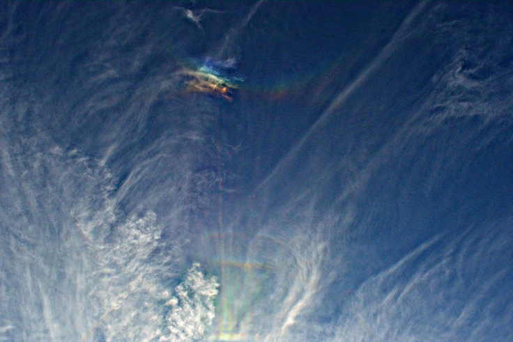 13:39 MESZ: Horizontalkreisfragment mit rechter 120° Nebensonne (die Aufhellung ganz links im blauen)