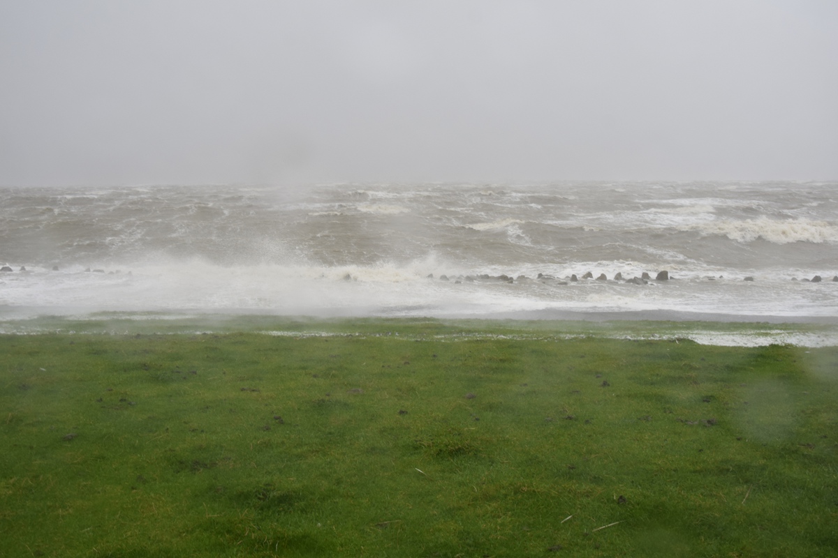 hier einige Impressionen direkt am Nordseedeich ... dort wo die Wellen sich an den Steinen brechen, sitzen wir sonst und schauen den Sonnenuntergang an. Zum Zeitpunkt der Aufnahme waren noch 3 Stunden bis Flut-Maximum. Normalerweise umspülen dort die Wellen sanft die Beine.