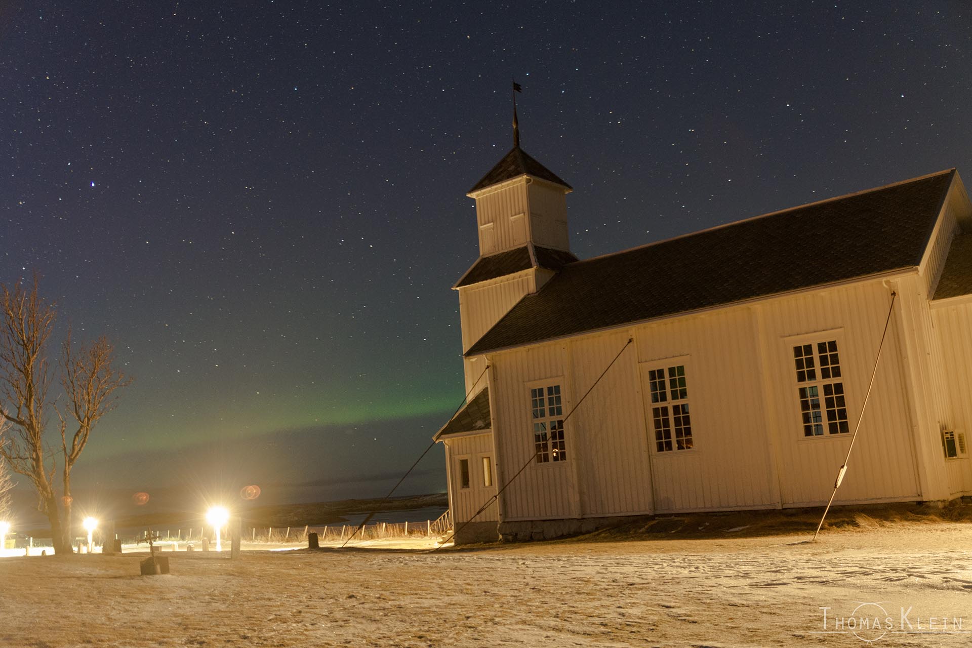 Nach Sonnenuntergang sind wir wieder zu einer Kirche gefahren, die Beleuchtung war dort aber leider heller als erwartet und das Polarlicht relativ schwach, sodass wir dort schnell wieder eingepackt haben und weitergefahren sind.