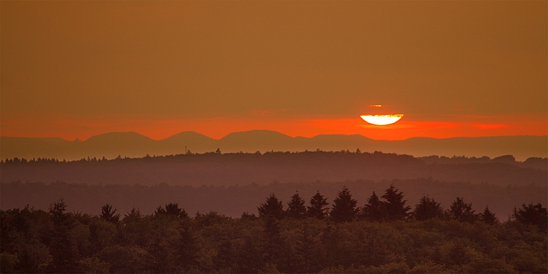 Ich war gestern Abend/Nacht ein wenig unterwegs - eigentlich, um die linienförmig angeordneten Gewitter zu fotografieren, welche vom Harz (über Hannover) gen Nord-West zogen. Diese lösten sich allerdings während der Dämmerung recht schnell auf - wie erwartet, aber man lässt eben nichts unversucht. Der Sonneuntergang war in dieser drückenden, feuchten Luft wirklich besonders. Unten, am Rande der norddeutschen Tiefebene, sieht man bereits, "wie der gestrige Taupunkt" für ordentlich Dunst sorgt: