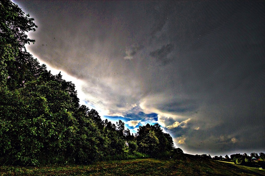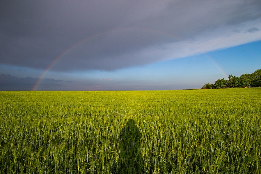 Am 13.Mai hatte ich nach einem sich auflösendem Gewitter, die Möglichkeit spontan durch wenige Kilometer fahrt an den Rand des Schauers und so in die Sonne zu gelangen. So konnte ich dann einen Regenbogen in seiner ganzen Pracht genießen. Zu dem war er mit über 30 Minuten recht langlebig. Als der Regenbogen sehr hell war habe ich aus neugier auch mal ein Bild in die Gegenrichtung gemacht vielleicht lässt sich ja auf dem Bild noch was finden. Und tatsächlich mit starker Bearbeitung und USM am Bild kann man ihn ganz schwach sehen.