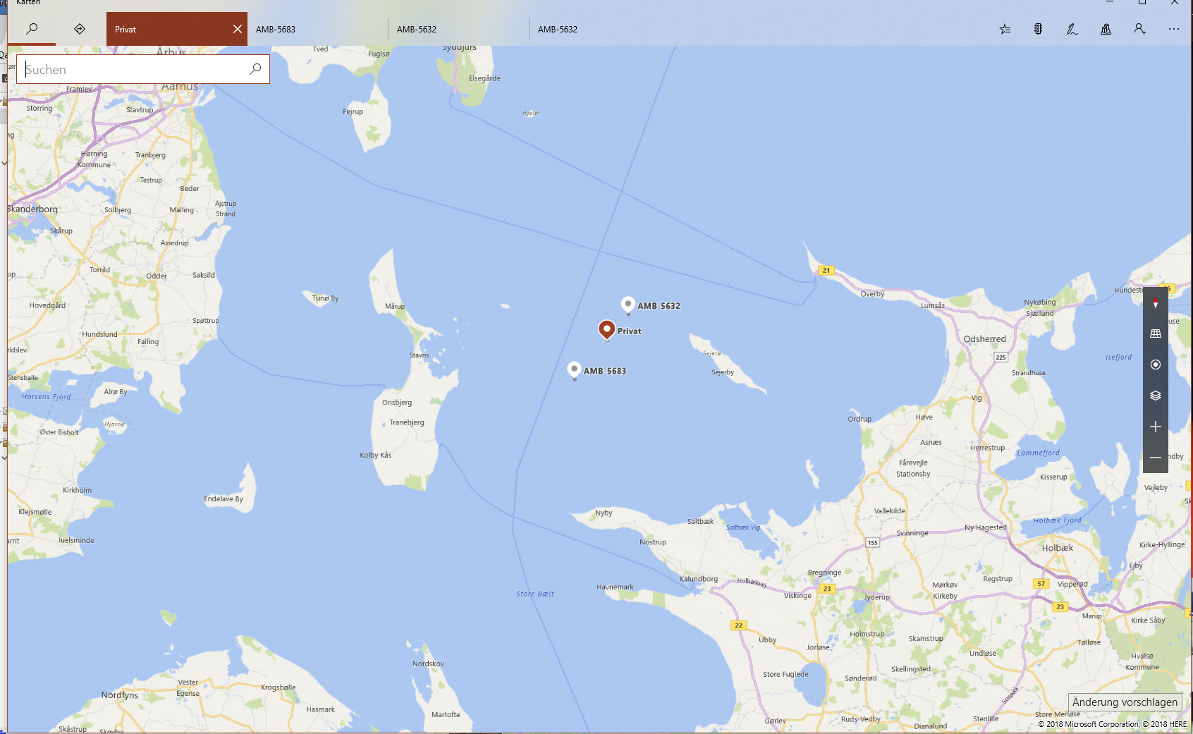 die Koordinaten des ersten Fotos aus der Kamera meines Mannes: 55,93751N 10,9734O; das letzte Foto um 01:40 MESZ: 55,87402N 10,87973O.