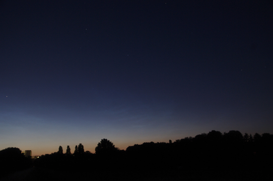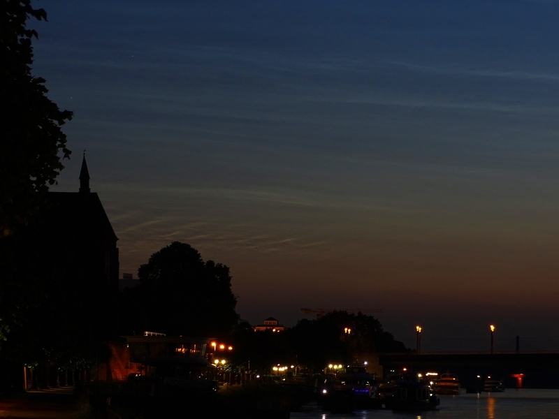 In Dresden konnte ich die NLC zwischen 23:00 und 23:30 MESZ auch beobachten und fotografieren. Dann kamen Wolken und der Schlaf rief.