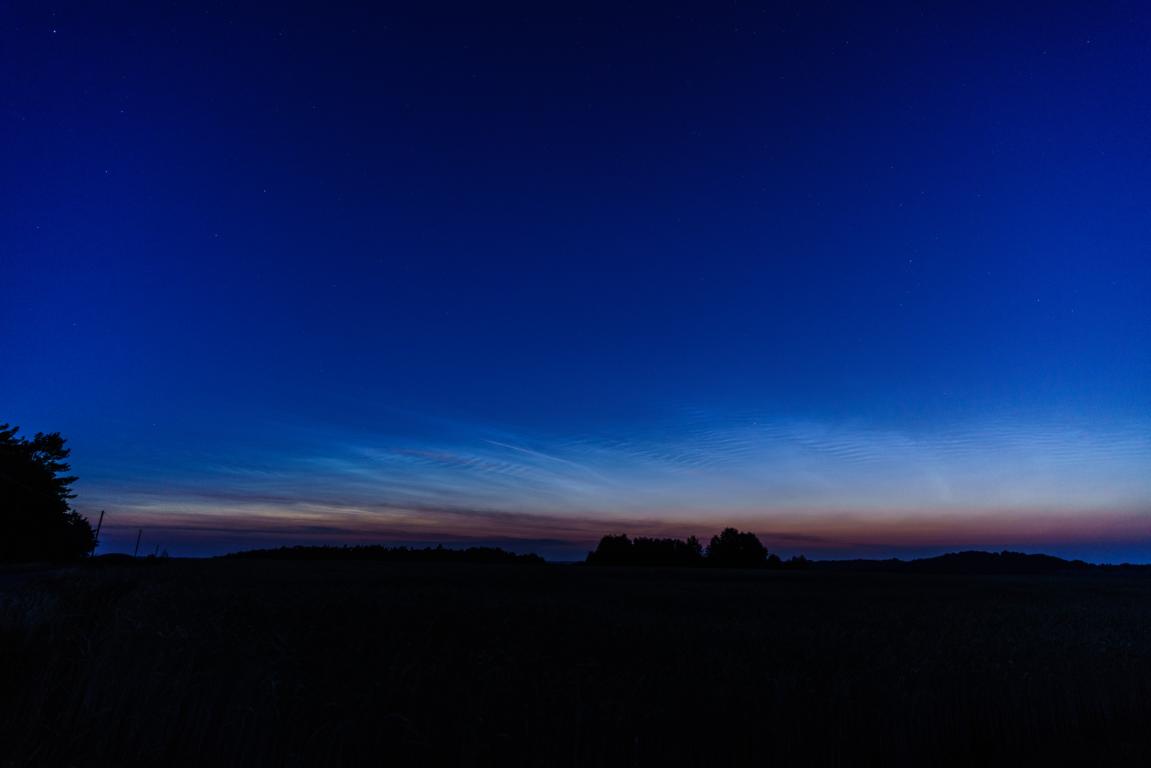Interessanterweise erstreckten sich die NLC mehr von N nach NE statt nach NW. Die Helligkeit war nicht groß, die Strukturen waren aber klar erkennbar und sicher zu identifizieren.