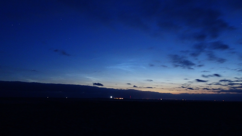 von mir eine Sichtung mit eigenen Augen vom Norddorfer Strand (Amrum) im Morgensektor. Nachdem wir zunächst unter bewölktem Himmel schwaches Meeresleuchten beobachtet haben, zog überraschend von Westen eine Aufklarungszone heran, in der zwischen etwa 02:20 und 02:45 MESZ ein kleines NLC-Display sichtbar war. Die Helligkeit lag gerade so bei 2. Azimuth grob im Gelände geschätzt von 330 über 360 bis 10°, Höhe etwa 15° - genaue Auswertung der Fotos erfolgt später.