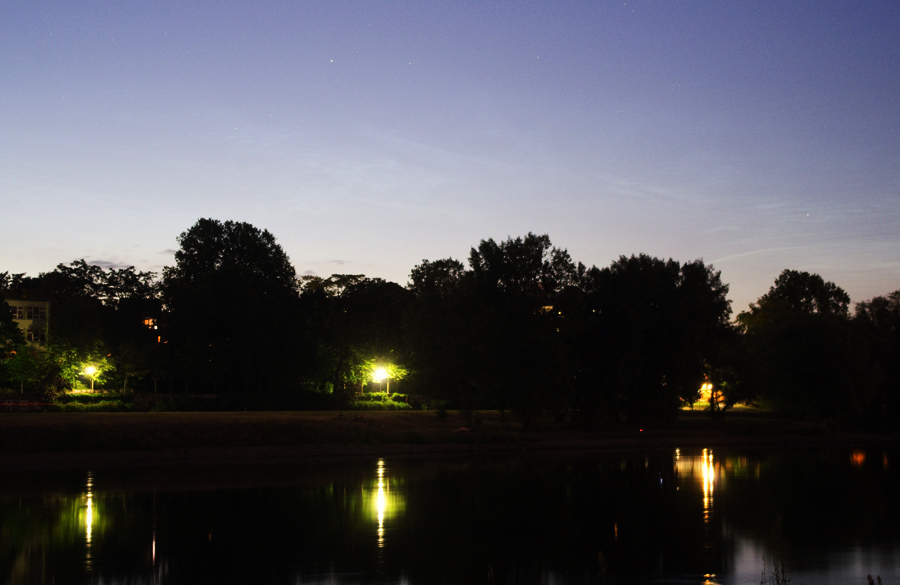 In Dresden konnte ich die NLC zwischen 23:00 und 23:30 MESZ auch beobachten und fotografieren. Dann kamen Wolken und der Schlaf rief.