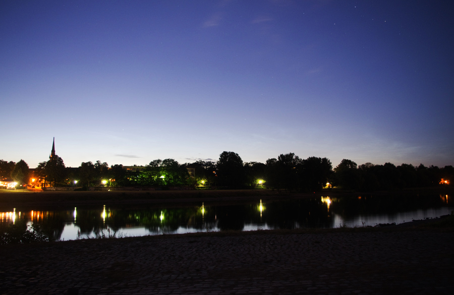 ich hab mich gestern abend nach einem erfolgreichen Kontrollblick aus dem Wohnungsfenster auch nochmal zum Elbufer von Dresden-Johannstadt aufgemacht: