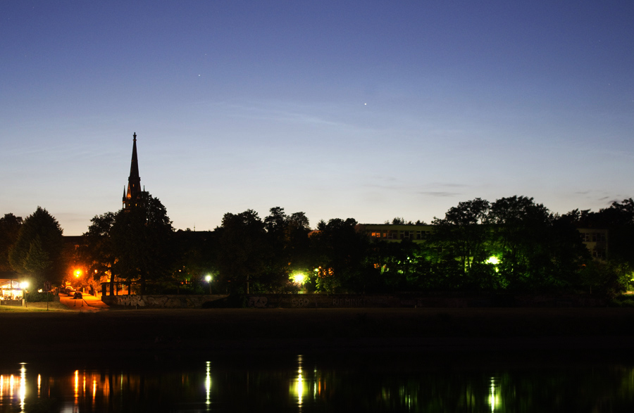 In Dresden konnte ich die NLC zwischen 23:00 und 23:30 MESZ auch beobachten und fotografieren. Dann kamen Wolken und der Schlaf rief.