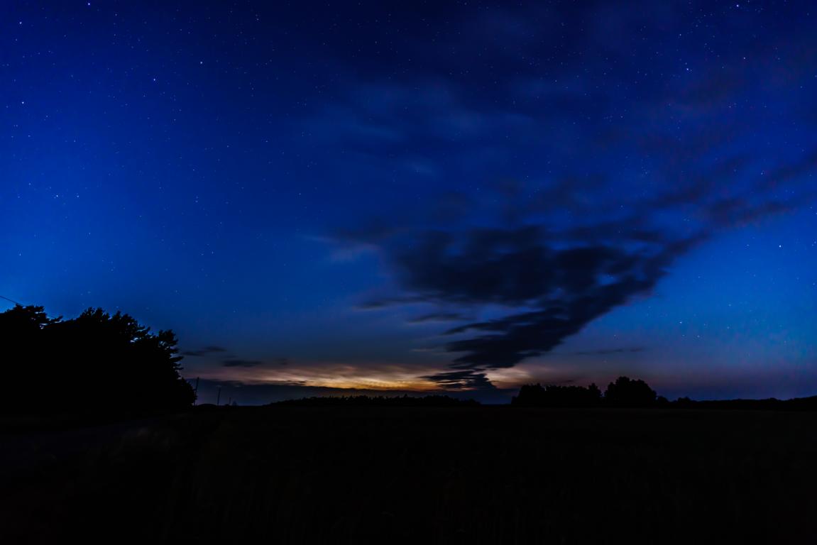 auch bei Bremerhaven gab es die NLC zu sehen. Ich bemerkte sie gegen 23:20 MESZ in Wolkenlücken und bin zunächst auf einen Feldweg bei Bramel gefahren. Um 23:40 MESZ waren die NLC weiter nur in Wolkenlücken sichtbar, aber imerhin bis etwa 30° hoch im NNW-Sektor. Ich bin dann zu einem Beobachtungsort knapp südlich von Kührstedt gefahren, um etwas weiter von Bremerhaven wegzukommen. Dort klarte es auf und die NLC waren von NW bis NNE mit Helligkeit 3 zu beobachten. Wegen des sinkenden Sonnenstandes sank die Oberkante auf etwa 10°. Ab 1:20 MESZ zog es sich von Westen leider zu, so dass die Morgensichtbarkeit hier verborgen blieb. Immerhin freue ich mich über meine erste NLC-Beobachtung 2018.