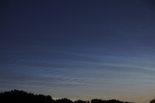 Interessanterweise erstreckten sich die NLC mehr von N nach NE statt nach NW. Die Helligkeit war nicht groß, die Strukturen waren aber klar erkennbar und sicher zu identifizieren.