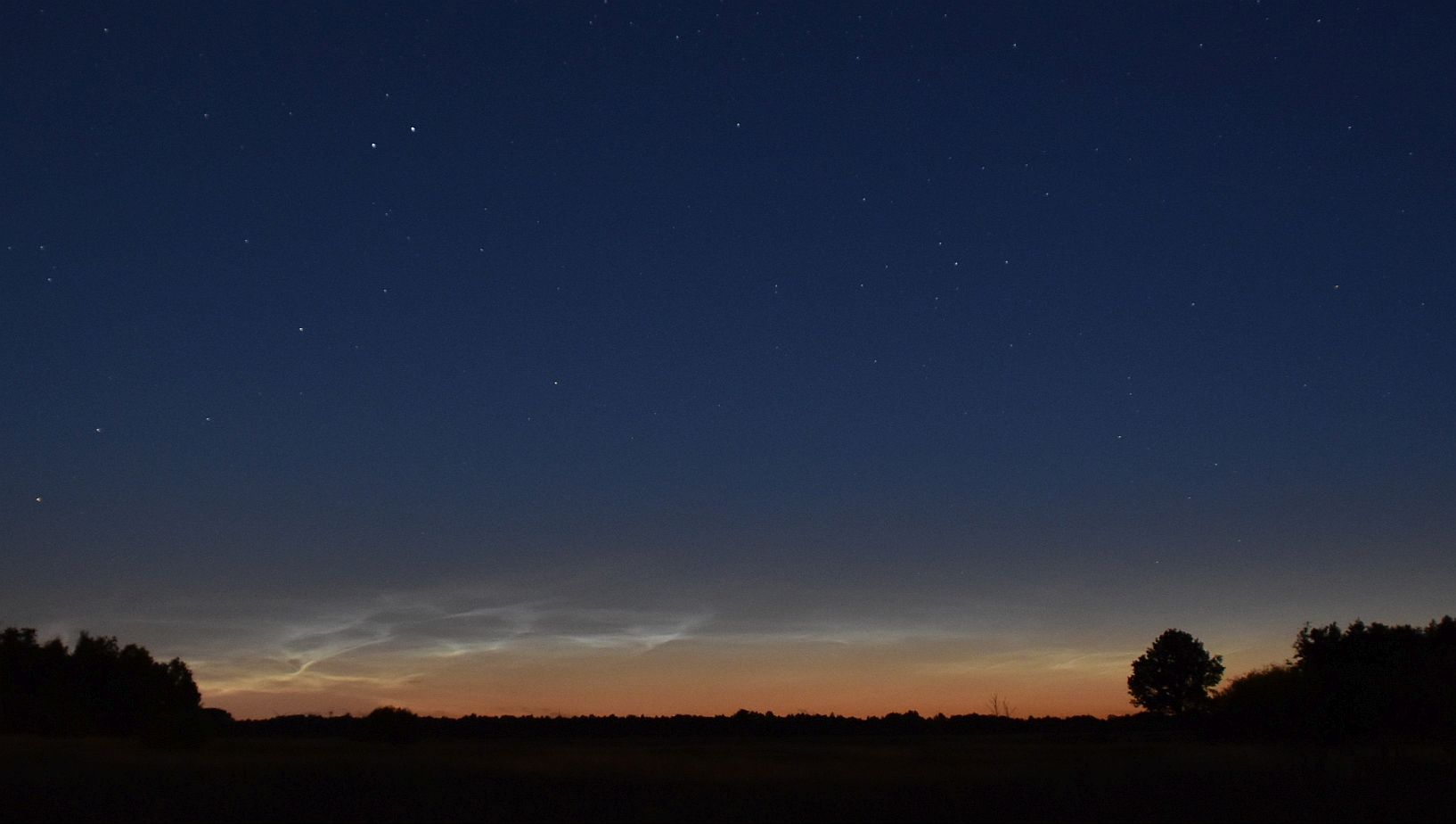 bei Bremerhaven gab es eine wirklich tolle NLC-Vorstellung! Sehr beeindruckende Strukturen, Helligkeit im Maximum 3-4. Am schönsten war es so gegen 00:50 MESZ. Dank Lauras Hinweis entdeckten wir die NLC Richtung Nordwest gegen 00:10 MESZ.
