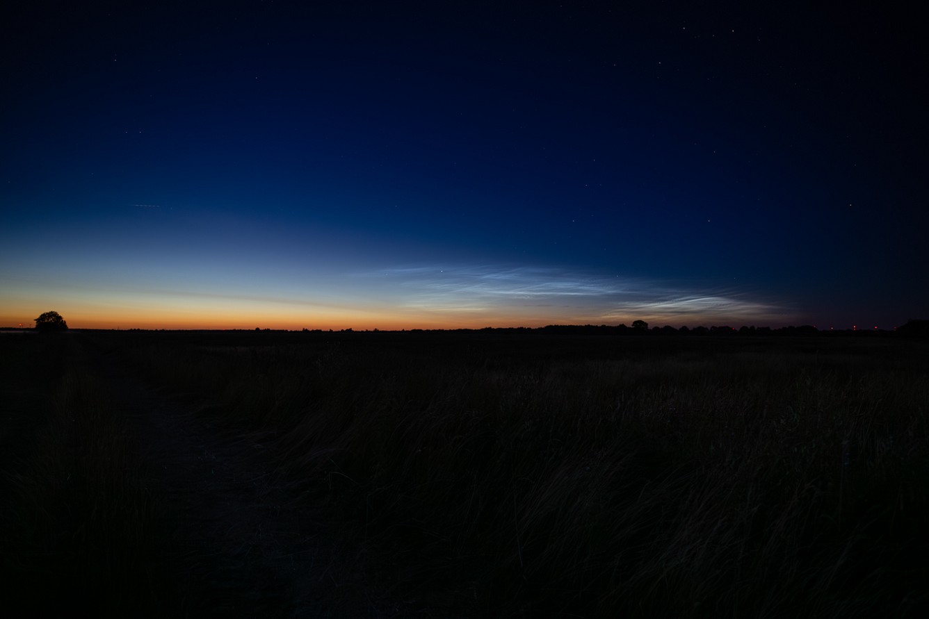 Der dunkle Streifen unterhalb der NLC´s ist der Rest der abziehenden Front vom Tage.