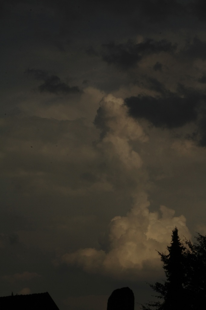 Danke für die Antwort Kevin. Ich schau mir viele Youtube-Filme über Tornados an und auch von Stormchasern, um mir irgendwie diese Begleiterscheinungen einzuprägen und Prozesse zu merken. Ich dachte, ich hätte verstanden, dass sich unter einem overshooting top und einer Aufwindzone ein Funnel bilden könnte. Weil das Wettersystem an besagtem Tag auch noch zyklonal war, irre hohe Taupunkte den ganzen Tag über herrschten, sah ich wohl, was ich gern zu sehen erhoffte.