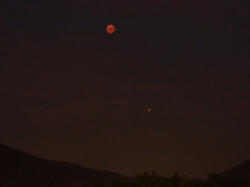 Von daher sind vorerst meine Vergleichsmessungen bei Planeten zu beachten. Jupiter hatte nach denen letzte Woche in Hakos -2,26 m, Venus -4,38 m. Der Mars lag übrigens zwischen -3,01 m und -3,11 m. Das paßt m.E. auf den Vergleich von gemeinsamen Fotos mit dem Finsternismond, wobei die meist auf die Milchstraße hin angelegten Weitwinkelaufnahmen für beide naturgemäß überbelichtet sind. Mars hat nämlich auch einen Oppositionseffekt, und zudem darf davon ausgegangen werden, daß der Staubsturm die Albedo etwas erhöht hat.