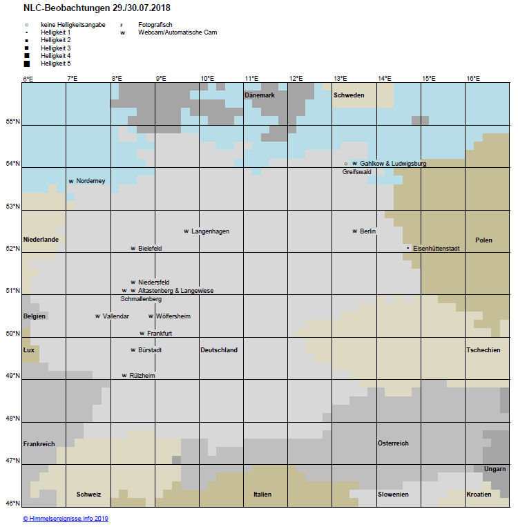Abb. 1: NLC-Beobachtungen in der Nacht 29./30.07.2018