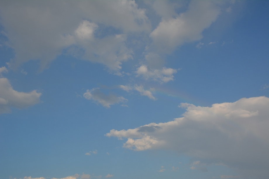 ich konnte am 9.8.2018 kurz vor 19 Uhr bei Wellheim (Bayern) Teile eines Regenbogens vor blauen Himmel beobachten.