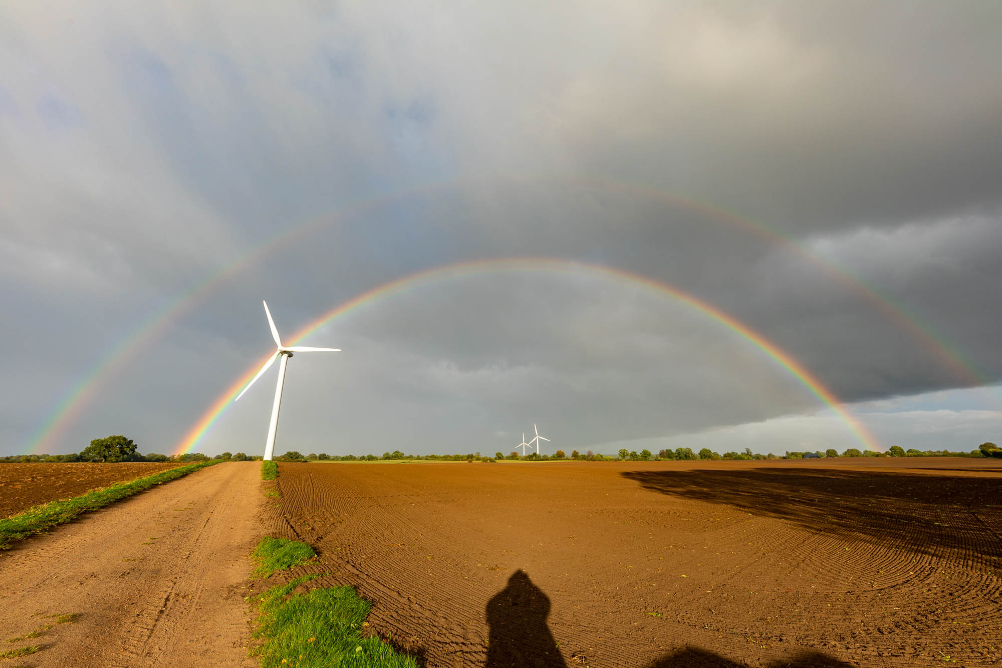 als gestern die ersten Herbststürme übers Land zogen war ich auf dem Weg zum Fotografen-Stammtisch in Kiel. Bereits am Ortsausgang von Gettorf fiel mir ein intensiver Regenbogen auf. Nächste Möglichkeit zu halten war in Wulshagen bei den Windrädern...