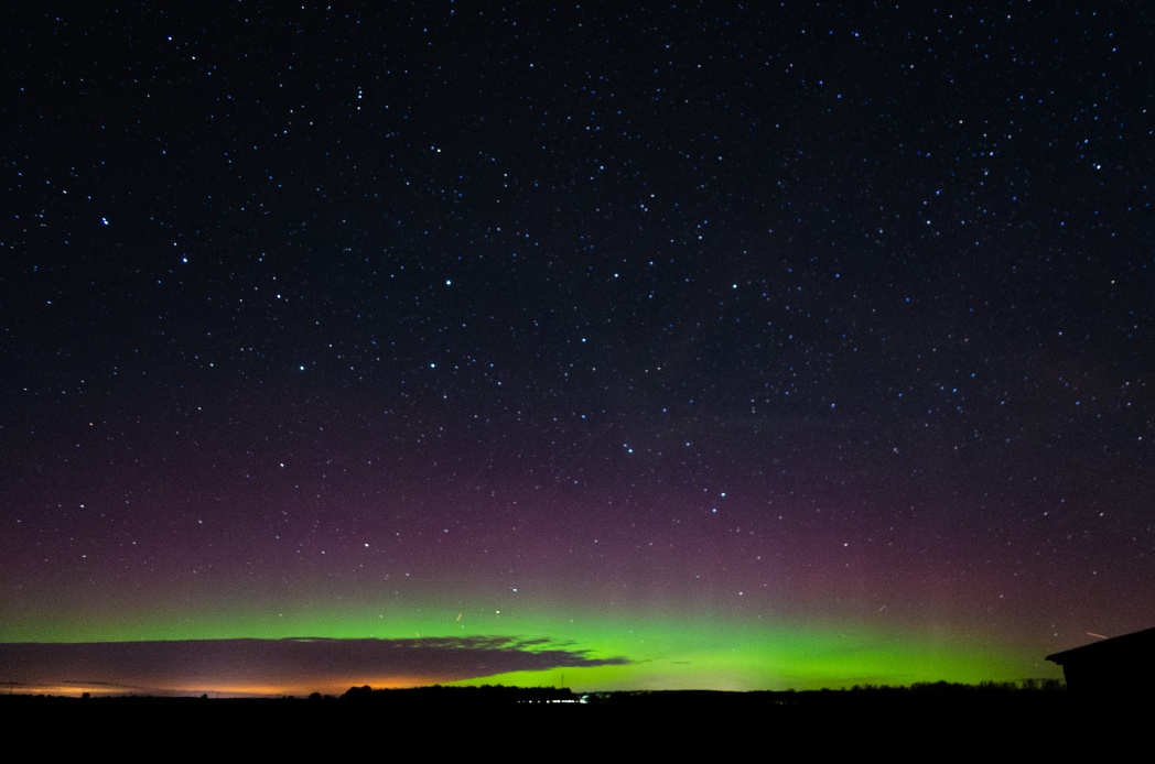 Unfortunately clouds near northern horizon hides the most of aurora here. But for solar minimum it was nice.
