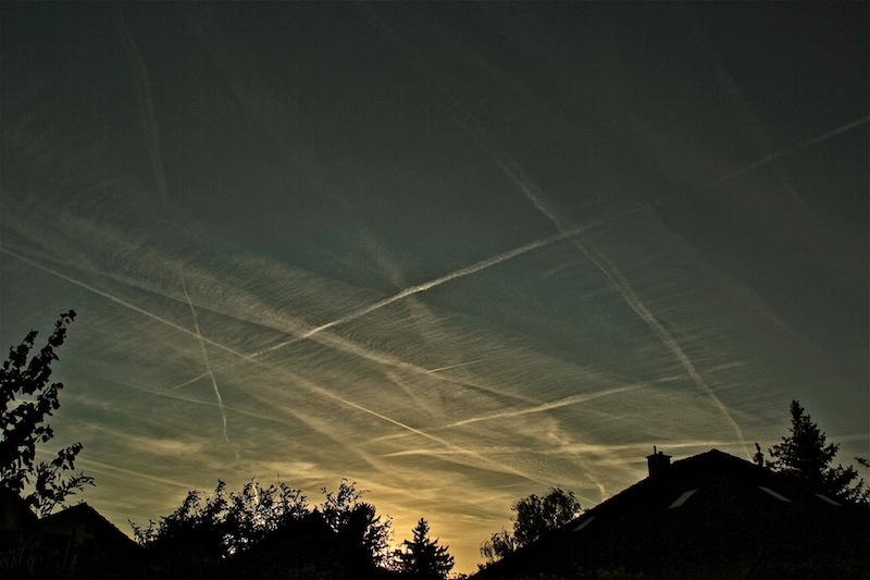 so einen Himmel mit Gittermuster habe ich am Dienstag Abend in Venedig gesehen. Das gibt es wohl häufiger in der Nähe von Flugplätzen mit viel Verkehr.