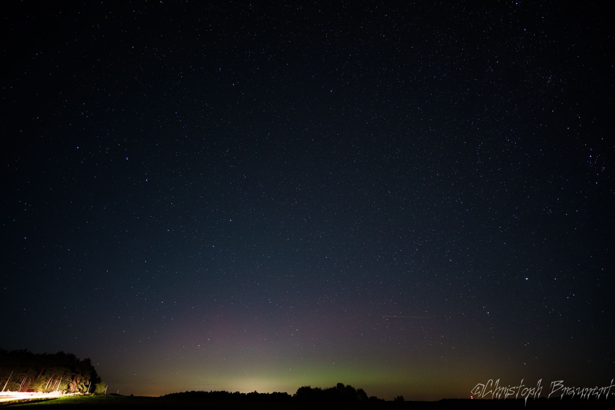 hier noch ein Bild des Polarlichts aus dem Harz. War an meinem Standort nicht einfach, einen Ort mit Blick auf den Nordhorizont zu finden. Standort schließlich auf einer Lichtung bei Dammhaus zwischen Clausthal und Braunlage. Foto von 20:14 MESZ. Danach wurde das PL schnell schwächer. Bei mir war die Sichtung rein fotografisch. Beobachtet habe ich ab 20:12 bis 20:42 MESZ. Ab 20:30 war aber kein PL mehr in den Aufnahmen erkennbar.