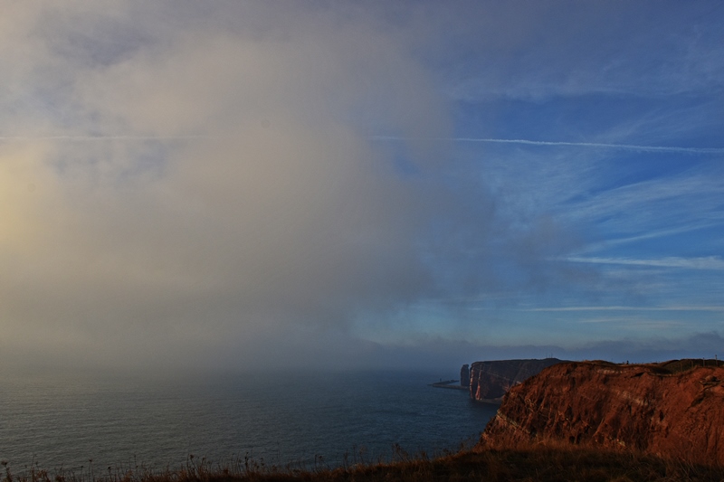 Gestern Nachmittag zog rund um Helgoland Nebel auf, wobei über der Insel