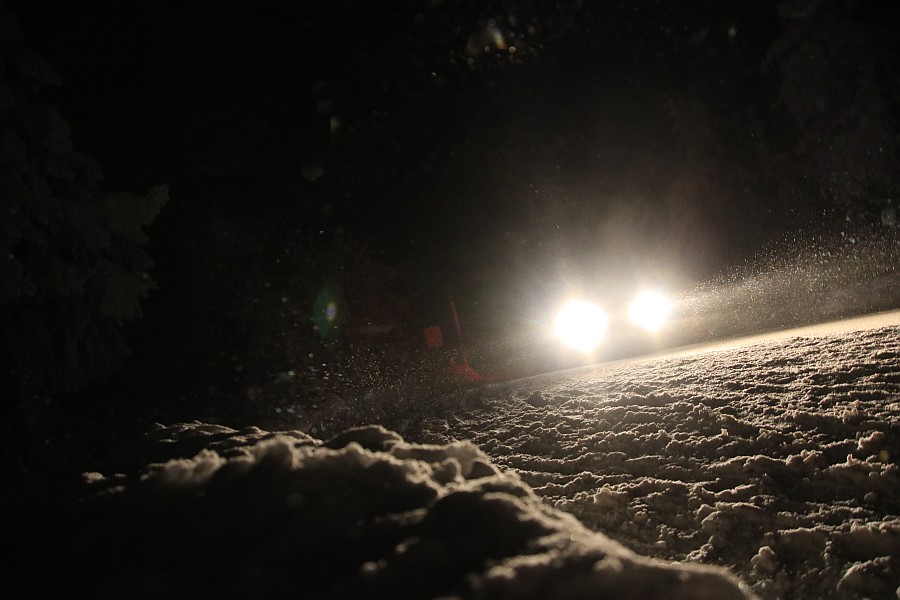 Nach Dienstschluss um 17 Uhr habe ich eine kleine Runde gedreht, als mir auffiel, dass jedes den Berg herunterkommendes Auto Lichtsäulen und/oder 22°-Ring mit reichlich Co. mit sich herschleppte. Ein Stativ hatte ich nicht mit, also hab ich im Schnee experimentiert, bis ich die Hände nicht mehr gespürt habe. Folgende Haloarten waren zu sehen: 22°-Ring, 2 bis 4 Nebenlampen, oberer und unterer Berührungsbogen, obere und untere Lichtsäule, tlw. 46°-Ring, Horizontalkreis(e) und Moilanenbögen.