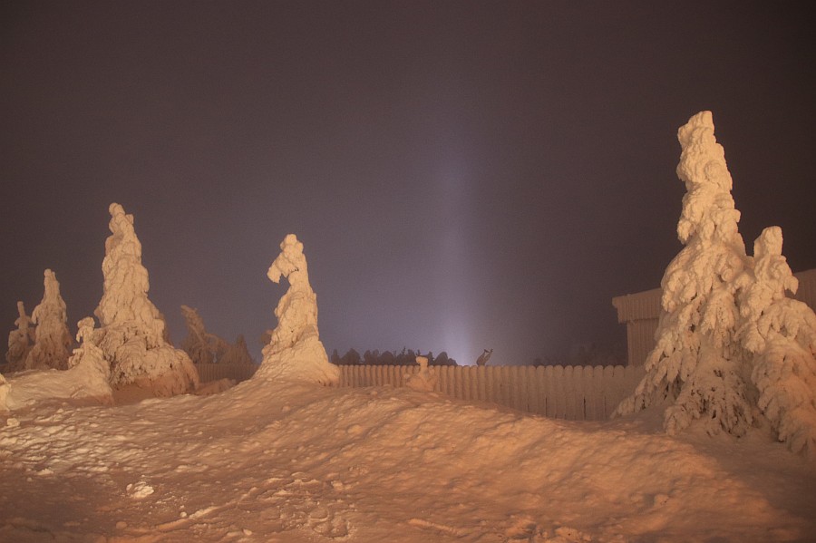 Lichtsäule und OBB bei der Sachsenbaude am Fichtelberg, 19:52 MEZ, f = 18 mm (leider einfarbig):