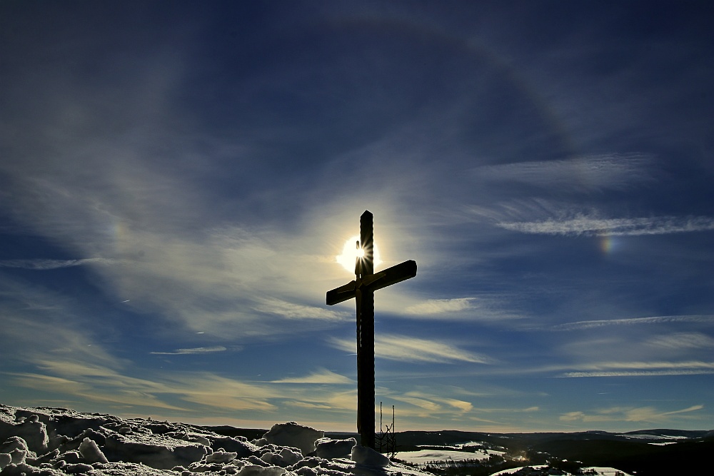 Auf dem Bärenstein zur Mittagszeit konnten ein schöner 22°-Ring, die Nebensonnen und der ZZB verfolgt werden.
