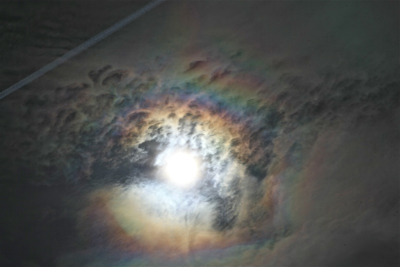 am späten Nachmittag bis Sonnenuntergang zeigte sich keine Korona mehr um die Sonne, dafür in der späten Dämmerung dann aber wieder am Mond.