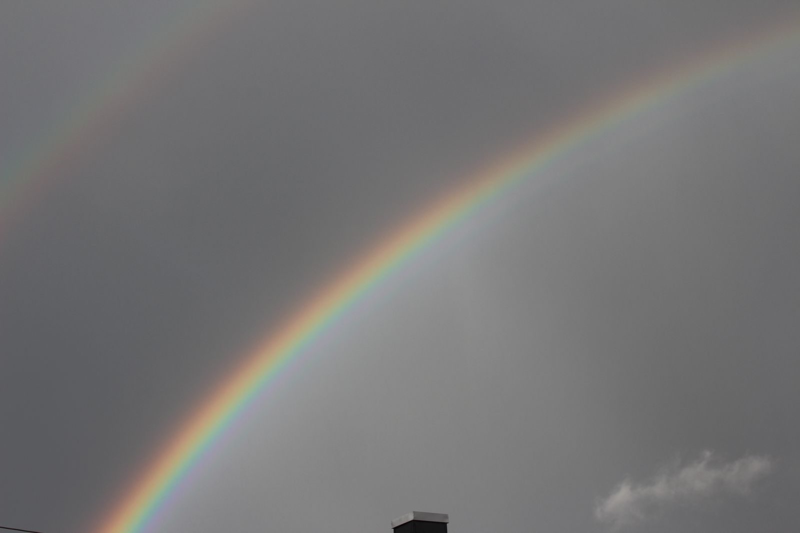 gestern abend gab's einen netten doppelten Regenbogen. Der Hauptbogen war geschlossen. Beim genaueren Hinschauen kann man auch noch mehrere Interferenstreifen erkennen. (hatte leider das Weitwinkelobjektiv nicht zur Hand) Grüße